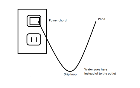 If your outlet is far from the pond use an outdoor, grounded, safe extension cord. Any home improvement store will have this. Be sure to create a drip loop to prevent water getting into your outlet.